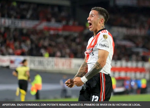 El «Millonario» abrió el marcador con un derechazo de media distancia de un encendido Enzo Fernández a los 10’ en la que tuvo un claro dominio, mientras que el uruguayo Nicolás De La Cruz, también de lejos y de volea después de un despeje en un tiro de esquina, puso el 2 a 0 parcial.