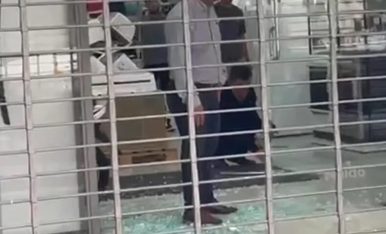 Según se informó, poco antes de la apertura del local, al menos dos maleantes forzaron la cortina de acero que protege el acceso y luego rompieron una de las puertas de ingreso, de vidrio templado de aproximadamente un centímetro de espesor.