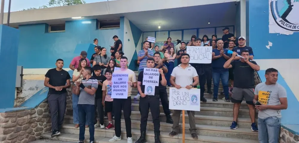 El reclamo también se replica en el interior provincial. En Andalgalá, efectivos de la Unidad Regional N°4 se manifiestan frente al edificio policial bajo consignas como “No más salarios de pobreza” y “Queremos un salario digno”. Situaciones similares se registran en Tinogasta y en la ciudad de Recreo, donde personal en actividad, retirados y familiares expresan su apoyo al pedido de actualización salarial.