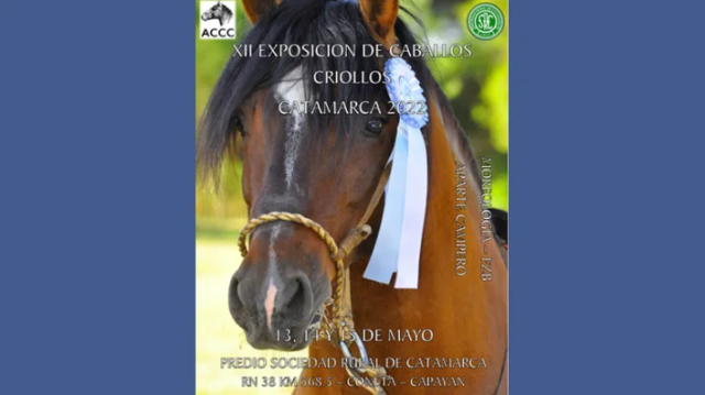 Del 13 al 15 de mayo se realizará la XII Exposición “C” de Caballos Criollos, organizada por la Subcomisión Caballos Criollos de Catamarca (ACCC), Sociedad Rural de Catamarca.
