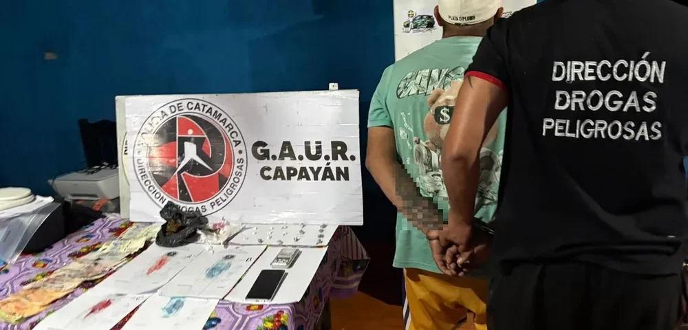 De acuerdo con información a la que se pudo acceder, pasadas las 18.30, tras un amplio trabajo de investigación, numerarios del Grupo Antinarcóticos de Unidades Regionales (GAUR- Capayán), dependientes de la Dirección Drogas Peligrosas de la Policía de la Provincia, dieron cumplimiento a una orden de allanamiento, dispuesta por el Juzgado Federal, a cargo del juez Miguel Ángel Contreras, en un domicilio ubicado en el barrio San Martín, Chumbicha, Capayán. En el marco de este procedimiento, los investigadores incautaron varios envoltorios de plástico. Estos contenían una sustancias herbácea y tipo polvo de color blanco, listos para comercializar. Al ser sometidas a la prueba de campo correspondiente arrojó como resultado que se trataría de marihuana y cocaína respectivamente. Estos envoltorios quedaron en calidad de secuestro al igual que la suma de $ 307.000 en efectivo, un teléfono celular y una balanza digital.