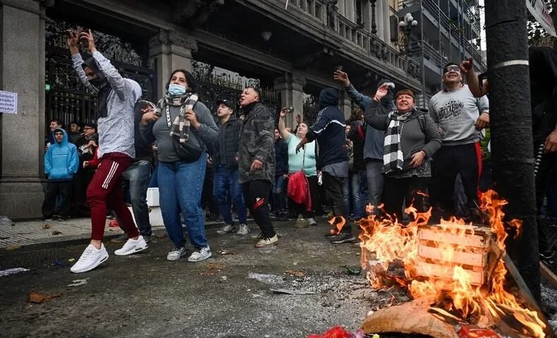 En ese marco, una de las imágenes del día fue cuando los manifestantes dieron vuelta un auto del móvil de Cadena 3 y posteriormente lo prendieron fuego en las inmediaciones del Congreso.