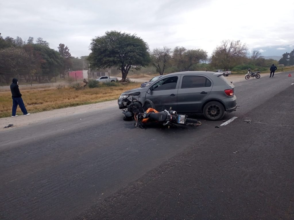 Minutos antes de las 8 de este jueves, entre el empalme con Avenida Juan Chelemín y la intersección con Ruta Provincial 33, un auto habría embestido a un motociclista. Personal policial y de emergencia trabajan en el lugar. Los heridos son un hombre y una mujer.