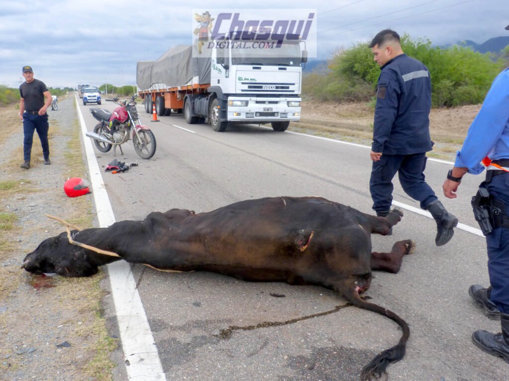 Un motociclista chocó a una vaca en RN 38 a la altura de Coneta
