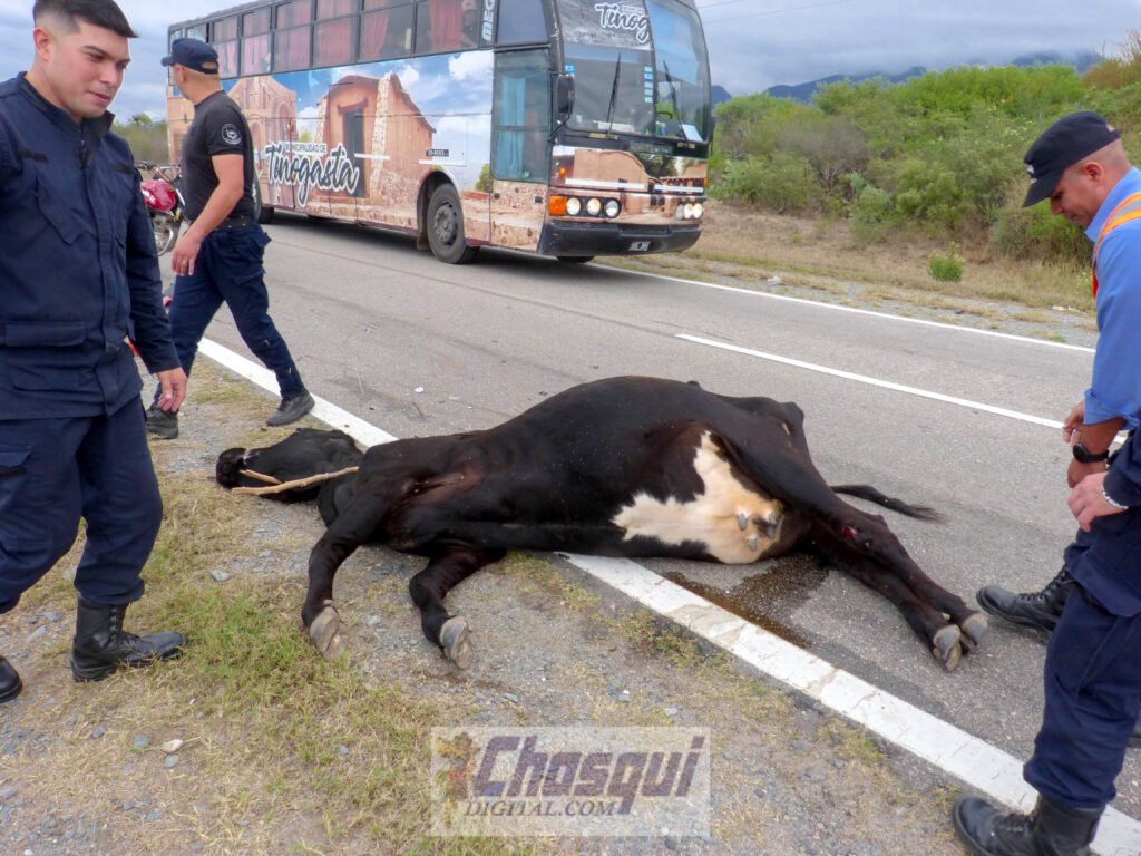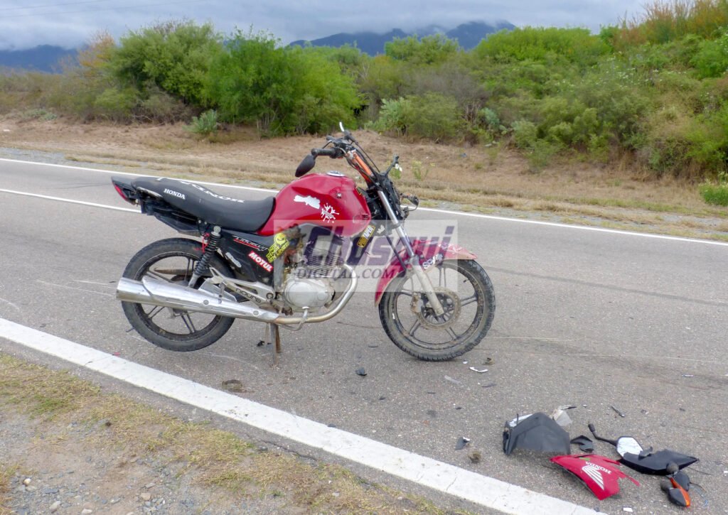 Intervino personal policial de la comisaria de Nueva Coneta que se constituyó en el lugar del accidente, una motocicleta Honda Titan 150 cc., de color rojo, conducida por Llampa Ivan Rolando de 26 años con domicilio en Colonia del Valle, circulaba por la ruta en dirección a la ciudad capital, cuando colisionó con un vacuno de raza criolla, de color negro que se encontraba en calzada de dicha ruta nacional.