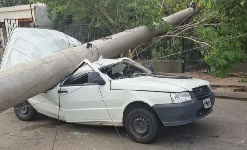 Una de las tantas imágenes impactante que dejó el fuerte temporal de lluvia y viento que se registró anoche en Valle Central fue el de una camioneta utilitaria Fiat Fiorino que fue aplastada por una columna del tendido eléctrico en pleno Barrio Alem.