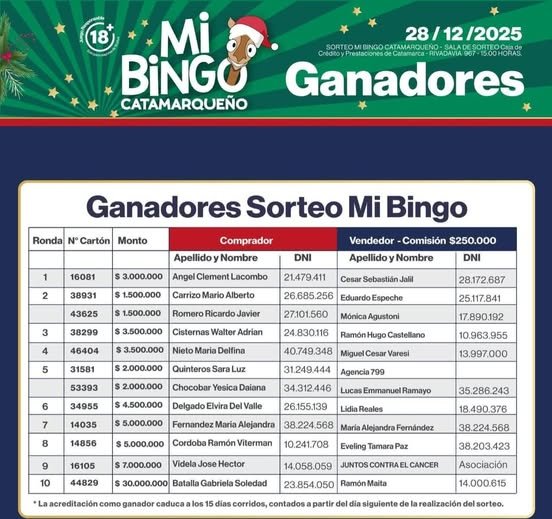 El gran premio viajó directo a Fiambalá, Tinogasta – Catamarca.