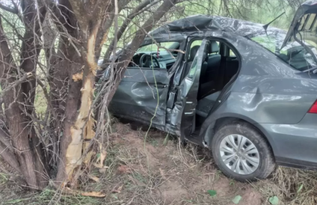 En la mañana de hoy, en la ruta nacional N 38, a la altura del kilómetro 527, fue escenario de un tremendo choque. El siniestro fue protagonizado por un automóvil Volkswagen Voyage, color gris, dominio AB 513 MO, que circulaba por dicha ruta al mando de Sergio Nicolás Carrizo (29) quien iba acompañado por Gregorio Carrizo (55) y Teresa Cosmo Carrizo (71).